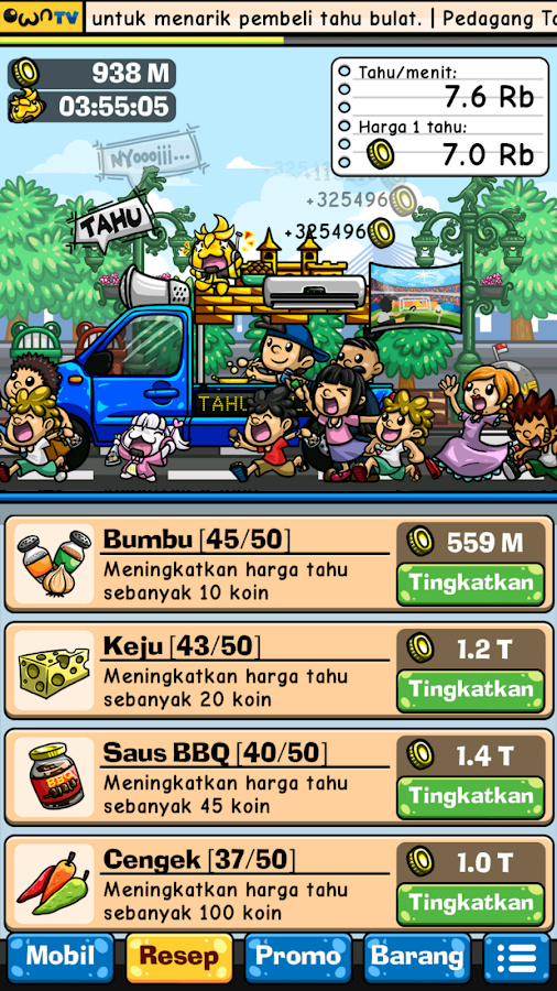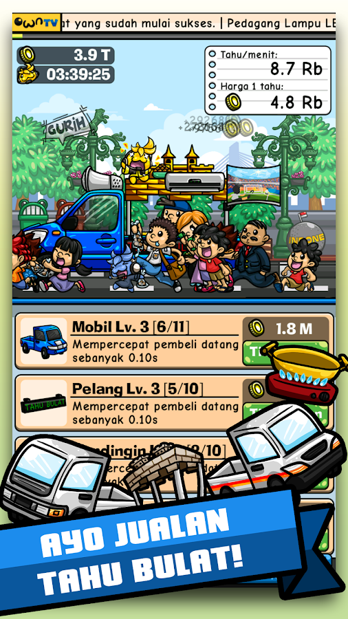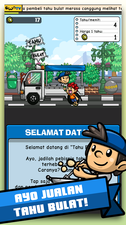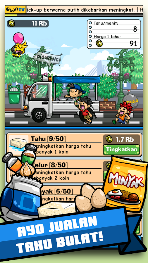 - Menjual tahu bulat hanya dengan tap dilayar